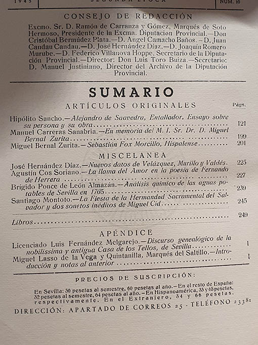 Alejandro de Saavedra, Entallador, ensayo sobre su persona y su obra. Manuel Carreras Sanabria: En memoria del M. I. Sr. D. Miguel Bernal Zurita. Miguel Bernal Zurita: Sebastian Fox Morcillo, Y OTROS
