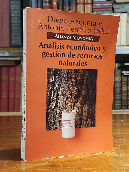 Publicado: Madrid: Alianza Economía 1994 Autor: AZQUETA, Diego / Antonio FERREIRO [Eds.]. Título: Análisis económico y gestión de recursos naturales. ISBN: 8420668079 Encuadernación: Encuadernación de tapa blanda Estado: Muy bien Información adicional: 8vo. 373 pp. Encuadernación editorial. Sello caucho anterior poseedor. Perfecto estado, sin subrayados, ni otros defectos.