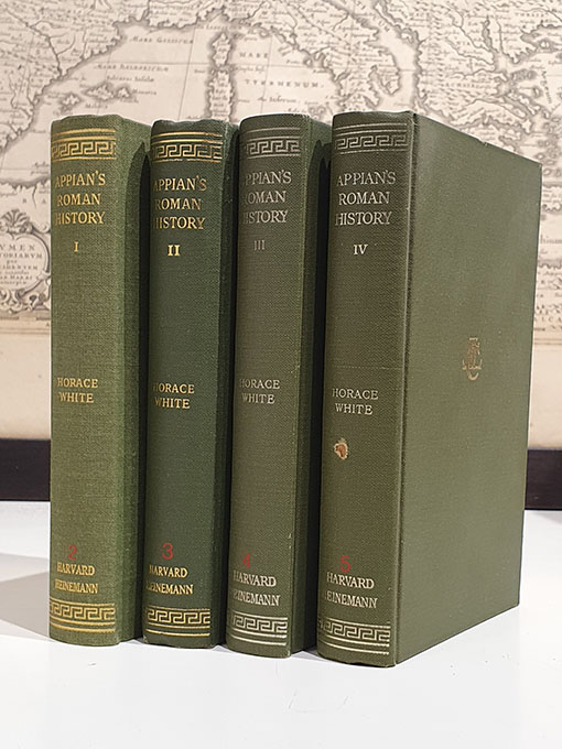 Appian´s Roman History. With an English translation by Horace White. In four volumes. Complete set. The Loeb Classical Library, 2, 3, 4 & 5. Bilingual Greek / English edition.