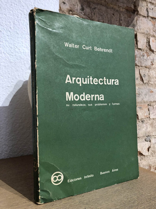 Publicado: Buenos Aires: Ediciones Infinito, 1959 Autor: CURT BEHRENDT, Walter. Título: Aquitectura moderna. Su naturaleza, sus problemas y formas. Encuadernación: Encuadernación de tapa blanda Estado: Aceptable Información adicional: 4to. 227 pp- Encuadernación editorial. Contracubierta con rayajo infantil y cubiertas un poco sobadas. Por lo demás limpio, sin subrayados y completo.