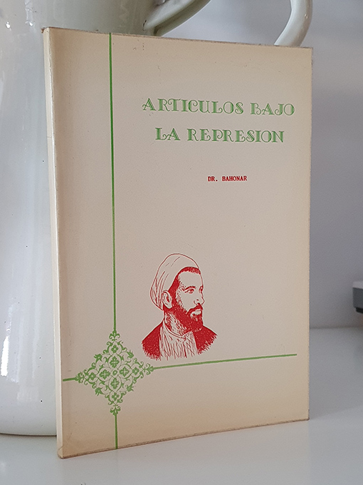 Publicado: Madrid: Resalat 1986 Autor: BAHONAR, Mohammad Javad. Título: Artículos bajo la represión. Encuadernación: Encuadernación de tapa blanda Estado: Muy bien Información adicional: 4to. 95 pp. Encuadernación editorial. Perfecto estado.