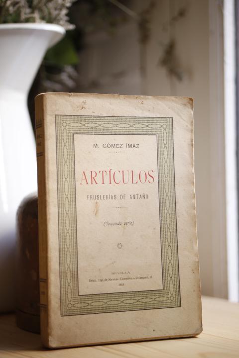 Publicado: Sevilla: Manuel Carmona, 1918 Autor: GÓMEZ IMAZ, Manuel. Título: Artículos. Fruslerías de antaño. Segunda serie. Encuadernación: Encuadernación de tapa blanda Estado: Muy bien Información adicional: 8vo. 173 pp. + 3 hojas. Rústica. Dedicatoria autógrafa del autor.