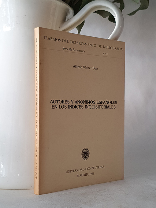 Publicado: Madrid: Universidad Complutense 1986 Autor: VÍLCHEZ DÍAZ, Alfredo. Título: Autores y Anónimos españoles en los Índices Inquisitoriales. ISBN: 8474911915 Encuadernación: Rústica Estado: Muy bien Información adicional: 8vo. 141 pp. + 1 h. Encuadernación ediorial. Buen estado.