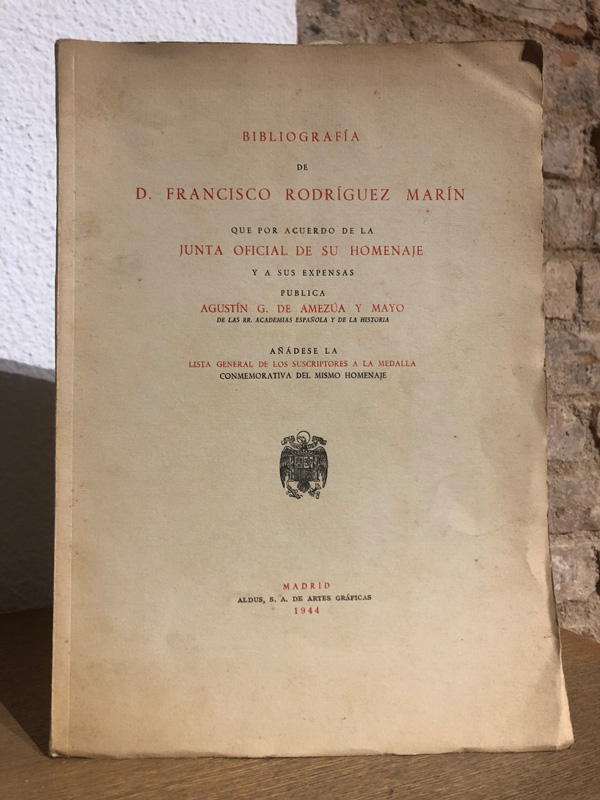 Bibliografía de D. Francisco Rodríguez Marín que por acuerdo de la Junta Oficial de su Homenaje y a sus expensas publica… Añádese la Lista General de los Suscriptores a la Medalla Conmemorativa del mismo homenaje.