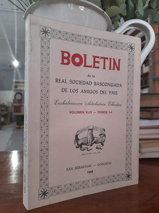 Boletín de la Sociedad Vascongada de los Amigos del País. Euskalerriaren Adiskideen Elkartea. Volumen XLIV – Tomos 3-4.