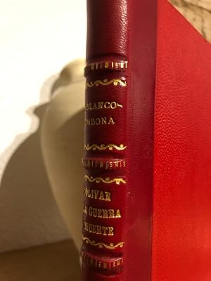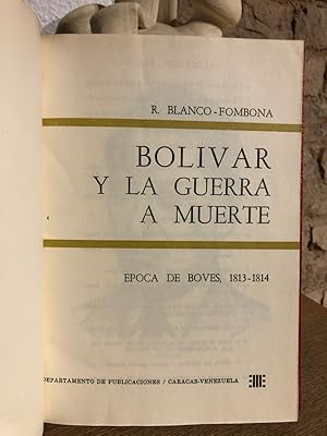 Publicado: Caracas: Departamento de Publicaciones, 1969 Autor: BLANCO-FOMBONA, R. Título: Bolivar y la guerra a muerte. Época de Boves, 1813-1814. Encuadernación: Encuadernación de tapa dura Estado: Muy bien Información adicional: 4to. menor, 258 pp. + 4 h. Encuadernación holandesa reciente. En impecable estado. Cortes jaspeados.