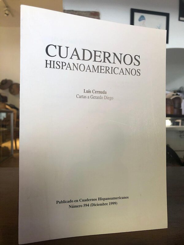 Publicado: s.l., Cuadernos Hispanoamericanos, S.F. Autor: CERNUDA, Luis. Título: Cartas a Gerardo Diego. Cuadernos Hispanoamericanos. Encuadernación: Encuadernación de tapa blanda Estado: Muy bien Información adicional: 4to. 10 pp. Rústica. Nuevo.