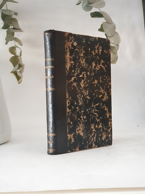 Publicado: Madrid: Pedro Núñez 1884 Título: Codigo penal militar y ley de organización y atribuciones de los Tribunales de Guerra, comentado y concordado el código con la jurisprudencia del Tribunal Supremo, en la parte que le es aplicable, y con las Ordenanzas Generales del Ejército, y precedido de una introducción de Hilario Igón y de un estudio sobre el Derecho Militar de Jose Núñez de Prado y seguido del libro II del Código Penal Comun. Encuadernación: Encuadernación de tapa dura Estado: Bien Información adicional: 8vo. 224 pp. Holandesa de época. Buen estado.