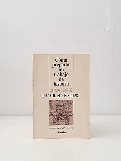 Publicado: Oikos Tau 1989 Autor: THULLIER, Guy / Jean TULARD Título: Cómo preparar un trabajo de historia. Métodos y técnicas ISBN: 8428106401 Encuadernación: Encuadernación de tapa blanda Estado: Muy bien Información adicional: 8vo. 139 pp. Encuadernación editorial. Perfecto estado