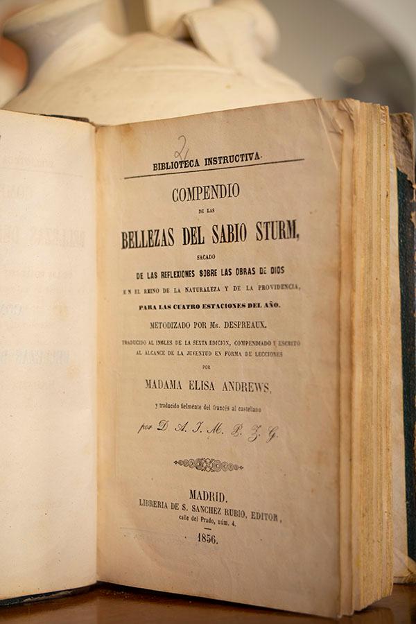 Publicado: Madrid: Sánchez Rubio, 1856 Título: Compendio de las Bellezas del sabio STURM. Encuadernación: Encuadernación de tapa dura Estado: Aceptable Información adicional: 8vo. 312 pp. +3h. + 4 láminas. Encuadernación holandesa de época rozada. Interior un poco manoseado y con óxido pero completo de grabados y páginas.