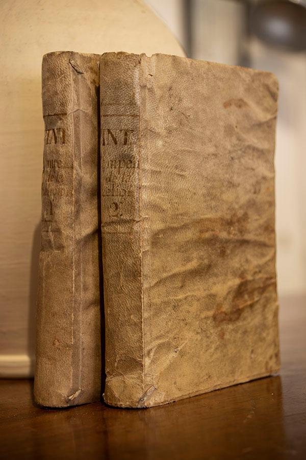 Publicado: Valencia: Oficina de Estevan, 1818 Autor: PINTON Josef. Título: Compendio histórico de la religión. 2 TOMOS. Encuadernación: Encuadernación de tapa dura Estado: Muy bien Información adicional: 8vo. I: VIII pp. + 386 pp. II: 355 pp. Pergamino de época, rótulo en lomo desvaído pero legible. Completo y en buen estado.