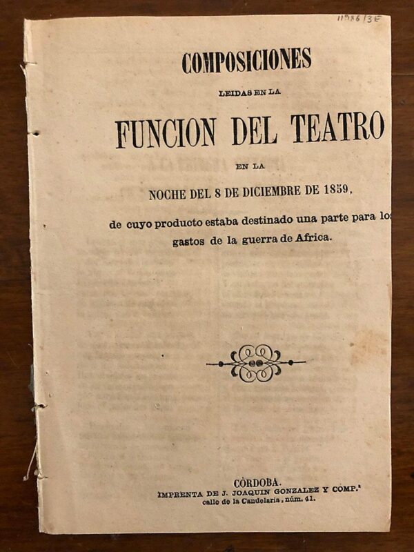 Composiciones leídas en la Función de Teatro en […] 1859. De cuyo producto estaba destinado una parte para los gastos de la Guerra de África.