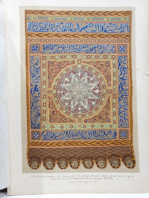 Publicado: Madrid: Montaner y Simón 1877 Título: [Cromolitografía] Bandera tomada a los moros por el Rey Alfonso VIII en la Batalla de Las Navas de Tolosa y que se conserva en el Real Monasterio de las Huelgas. Burgos. Estado: Bien Información adicional: Folio, 24 x 33 cm. Buen estado. Perfecta para enmarcar.