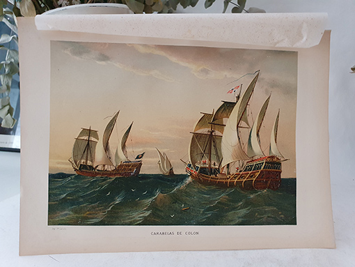 Título: [Cromolitografía] Carabelas de Colón. Estado: Bien Información adicional: Folio, 33x24 cm. Buen estado. Perfecta para enmarcar.