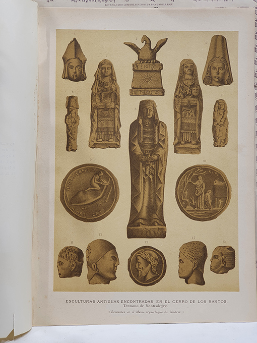 Publicado: Madrid: Montaner y Simón 1877 Título: [Cromolitografía] Esculturas antiguas encontradas en el Cerro de los Santos, término de Montealegre, Yecla, Murcia. Estado: Bien Información adicional: Folio, 24 x 33 cm. Buen estado. Perfecta para enmarcar.