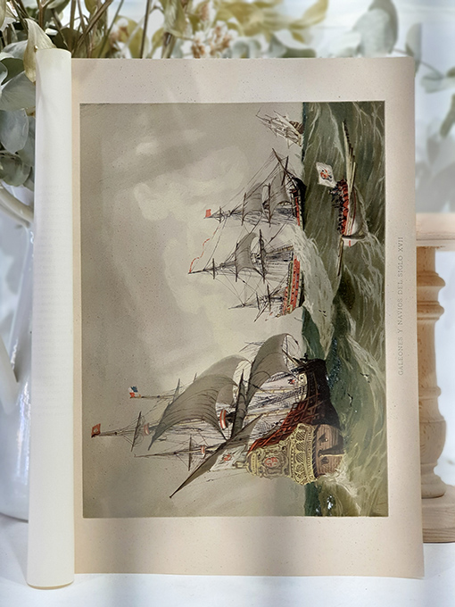 [Cromolitografía]. Galeones y navíos del S. XVII.