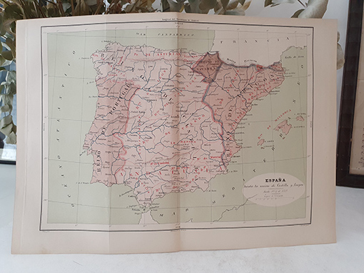 Título: [Cromolitografía] Mapa de España hasta la unión de Castilla y Aragón. desde 1257 a 1515. Encuadernación: Sin encuadernar Estado: Bien Información adicional: Folio, 33x48 cm. Buen estado. Perfecta para enmarcar.