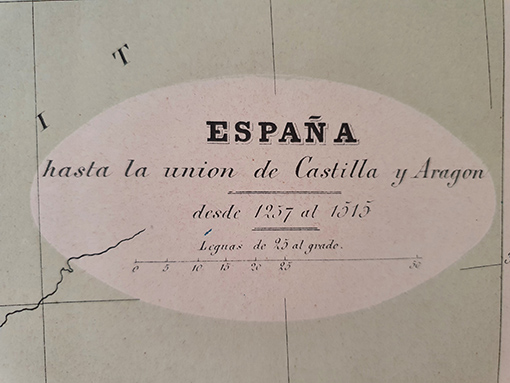 [Cromolitografía] Mapa de España hasta la unión de Castilla y Aragón. desde 1257 a 1515.