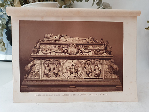Título: [Cromolitografía] Mausoleo de los Reyes Católicos D. Fernando y Dña. Isabel en Granada. Encuadernación: Sin encuadernar Estado: Bien Información adicional: Folio, 33x24 cm. Buen estado. Perfecta para enmarcar.