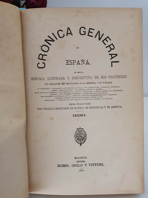 CRÓNICA GENERAL DE ESPAÑA, o Sea Historia Ilustrada y Descriptiva de sus Provincias. Tomo que incluye las provincias de CÁCERES, BADAJOZ, ALBACETE y MURCIA.