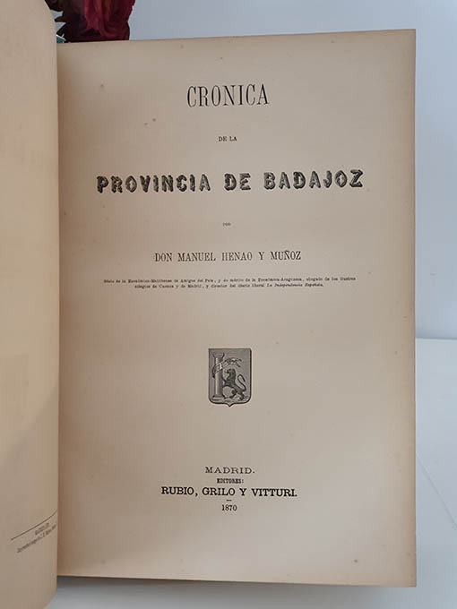 Publicado: Madrid: Rubio, Grilo y Vitturi 1870 Autor: Rosell, Cayetano (Director) Título: CRÓNICA GENERAL DE ESPAÑA, o Sea Historia Ilustrada y Descriptiva de sus Provincias. Tomo que incluye las provincias de CÁCERES, BADAJOZ, ALBACETE y MURCIA. Encuadernación: Encuadernación de tapa dura Estado: Bien Información adicional: Folio, unas 60 páginas por provincia así como un mapa y varios grabados de personajes ilustres. Encuadernación holandesa de época con nervios y puntas. Un poco rozado aunque el interior se encuentra en perfectas condiciones.