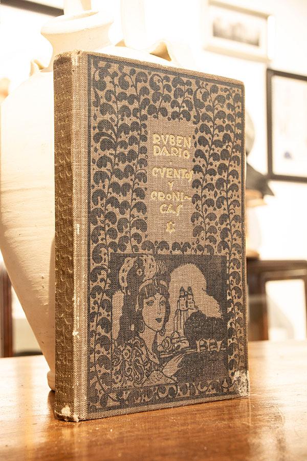 Publicado: Madrid: Mundo Latino, 1918 Autor: DARÍO, Rubén. Título: Cuentos y Crónicas. Encuadernación: Encuadernación de tapa dura Estado: Bien Información adicional: 8vo. 198 pp. + 5h. Encuadernación modernista de editorial. Estampada en negro y oro. Lomo desvaido. Buen estado.