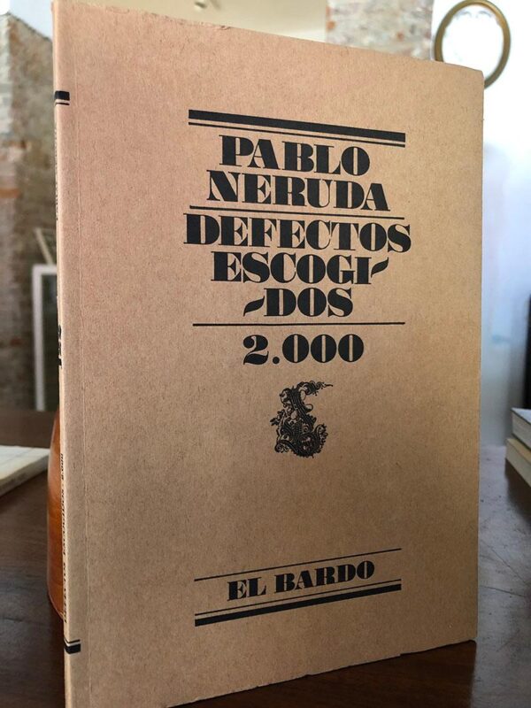 Publicado: Barcelona: Lumen, 1978 Autor: NERUDA, Pablo. Título: Defectos escogidos. ISBN: 8426427227 Encuadernación: Encuadernación de tapa blanda Estado: Muy bien Información adicional: 8vo. 68 pp. + 2 h. Rústica con solapas. Ex-libris de caucho anterior poseedor. Perfecto estado.