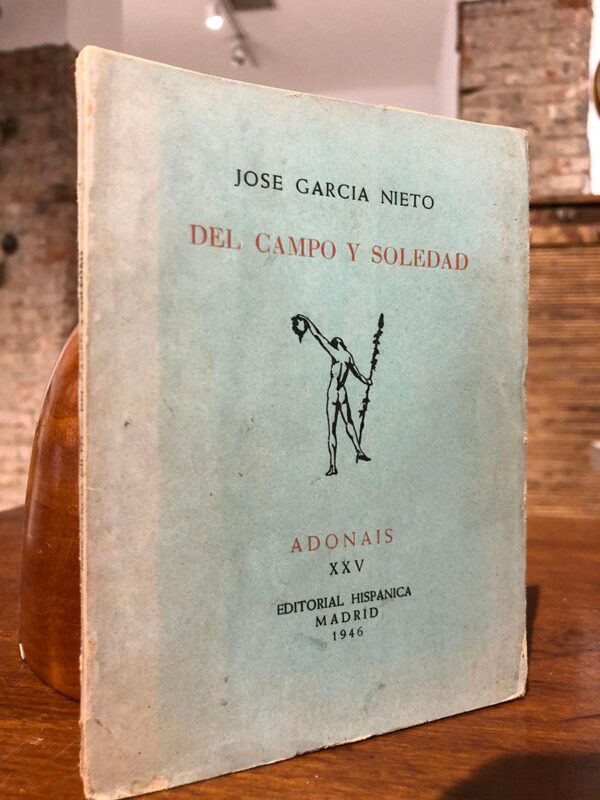 Publicado: Madrid: Editorial Hispánica, 1946 Autor: GARCIA NIETO, Jose. Título: Del campo y soledad. Colección Adonáis, XXV. Encuadernación: Encuadernación de tapa blanda Estado: Bien Información adicional: 11.2x15.3 cm. 72 pp. 4 h. Rústica con solapas. Buen estado.