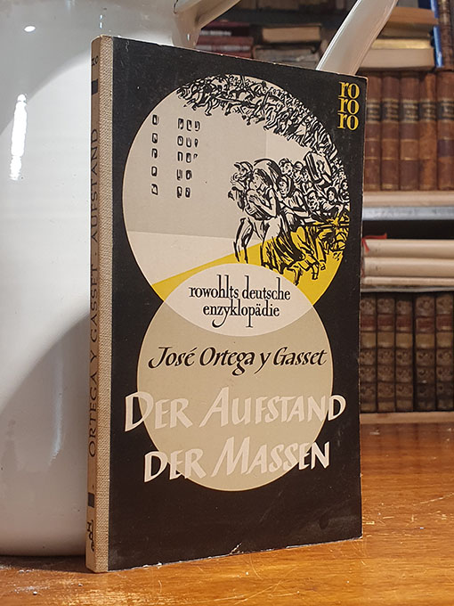 Publicado: Hamburg: Rowohlt Taschenbuch Verlag 1958 Autor: ORTEGA Y GASSET, José. Título: Der Aufstand der Massen. [La rebelión de las masas] Encuadernación: Encuadernación de tapa blanda Estado: Bien Información adicional: 8vo. 157 pp. Encuadernación editorial. Perfecto estado.