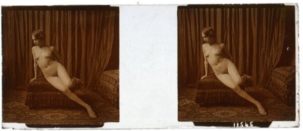 Desnudo artístico estereoscópico en cristal. Fotografía estereoscópica. Jules Richard. [Attributed to]
