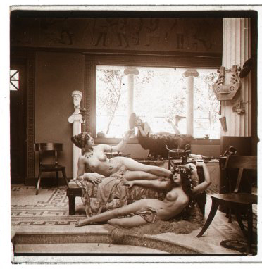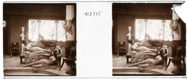Desnudo artístico estereoscópico en cristal. Fotografía estereoscópica. Jules Richard. The Atrium.