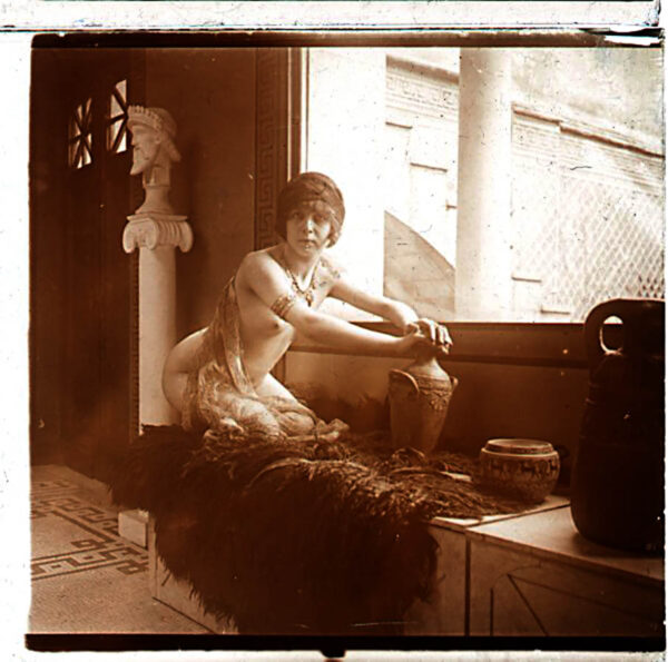 Desnudo artístico estereoscópico en cristal. Fotografía estereoscópica. Jules Richard. The Atrium.