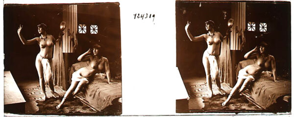 Desnudo artístico estereoscópico en cristal. Fotografía estereoscópica. Jules Richard. The Atrium.