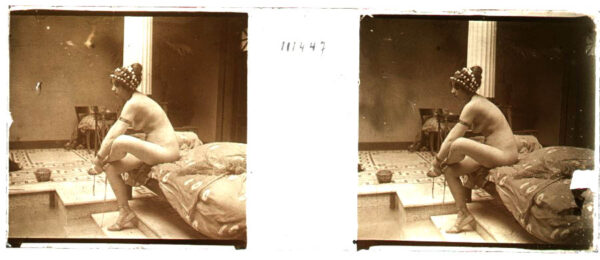 Desnudo artístico estereoscópico en cristal. Fotografía estereoscópica. Jules Richard. The Atrium.
