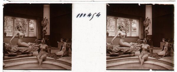 Desnudo artístico estereoscópico en cristal. Fotografía estereoscópica. Jules Richard. The Atrium.