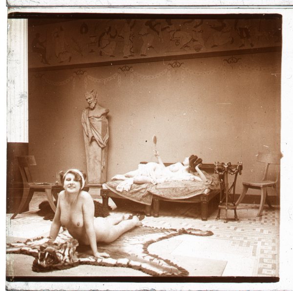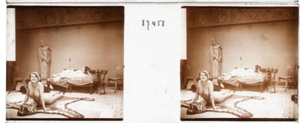Desnudo artístico estereoscópico en cristal. Fotografía estereoscópica. Jules Richard. The Atrium.