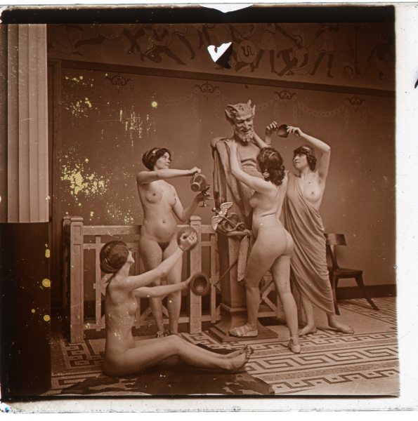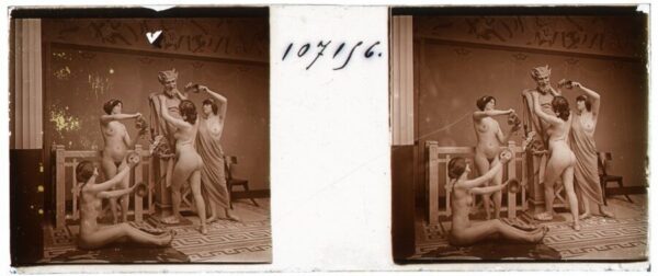 Desnudo artístico estereoscópico en cristal. Fotografía estereoscópica. Jules Richard. The Atrium.