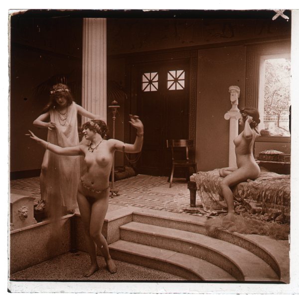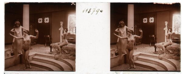 Desnudo artístico estereoscópico en cristal. Fotografía estereoscópica. Jules Richard. The Atrium.
