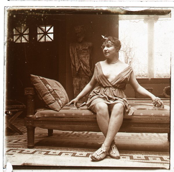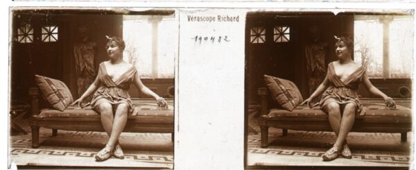 Desnudo artístico estereoscópico en cristal. Fotografía estereoscópica. Jules Richard. The Atrium.