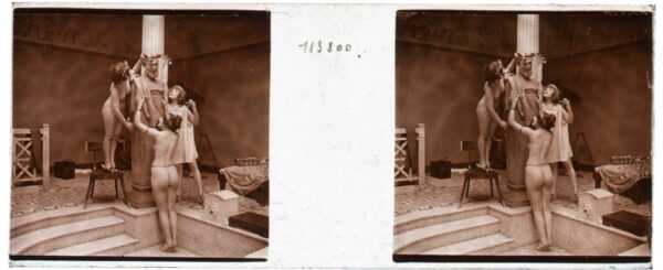 Desnudo artístico estereoscópico en cristal. Fotografía estereoscópica. Jules Richard. The Atrium.