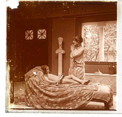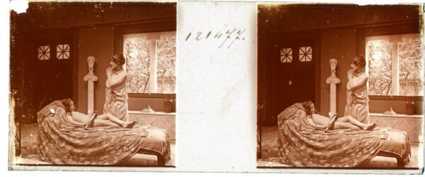 Desnudo artístico estereoscópico en cristal. Fotografía estereoscópica. Jules Richard. The Atrium.