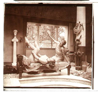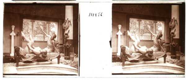 Desnudo artístico estereoscópico en cristal. Fotografía estereoscópica. Jules Richard. The Atrium.