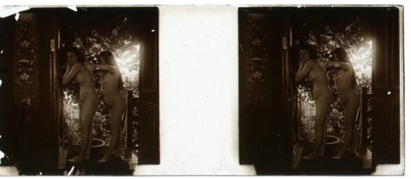 Desnudo artístico estereoscópico en cristal. Fotografía estereoscópica. Jules Richard. The Atrium [Attributed to]