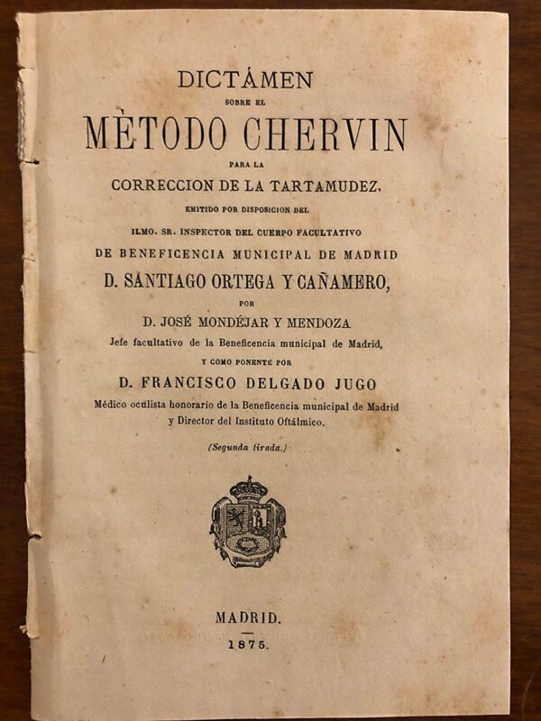 Dictámen sobre el Método Chervin para la corrección de la Tartamudez. Emitido por disposición del Ilmo. Santiago Ortega y Cañamero por… y…