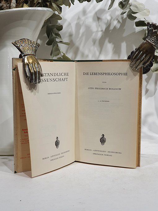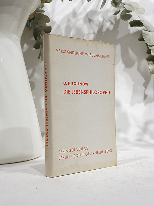 Publicado: Berlin: Springer 1958 Autor: BOLLNOW, Otto Friedrich. Título: Die Lebensphilosophie. Encuadernación: Encuadernación de tapa dura Estado: Bien Información adicional: 8vo. VI pp. + 154 pp. In original cloth binding with dust jacket. Previous owner name in fly-leaf, overall good copy.
