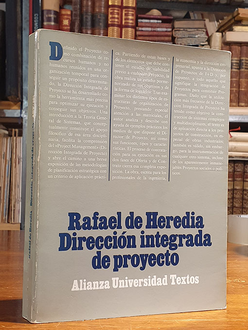 Publicado: Madrid:Alianza Editorial 1985 Autor: HEREDIA, Rafael De Título: DIRECCION INTEGRADA DE PROYECTO " PROJECT MANAGEMENTE" ISBN: 8420681016 Encuadernación: Encuadernación de tapa blanda Estado: Bien Información adicional: 4to. 373 pp. Dedicatoria autógrafa del autor. Con uso pero sin abuso.