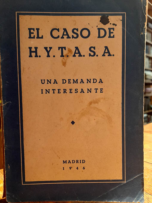 Publicado: Madrid: Prensa Catalana, 1946 Título: El caso de H.Y.T.A.S.A una demanda interesante. Encuadernación: Encuadernación de tapa blanda Estado: Aceptable Información adicional: 4to. 124 pp. Rústica, ejemplar con un poco de fatiga.