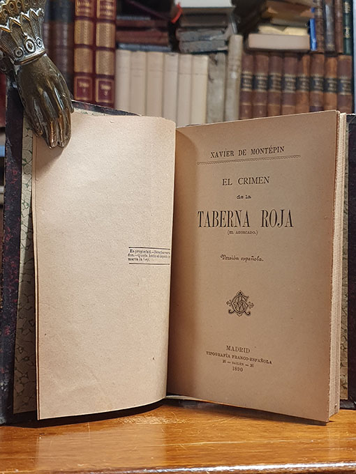 Publicado: Madrid: Tipografía Franco-Española 1890 Autor: MONTEPIN, Xavier. Título: El crimen de la taberna roja. El ahorcado. Encuadernación: Encuadernación de tapa dura Estado: Bien Información adicional: 8vo. 317 pp. Holandesa de época con nervios. En buen estado.
