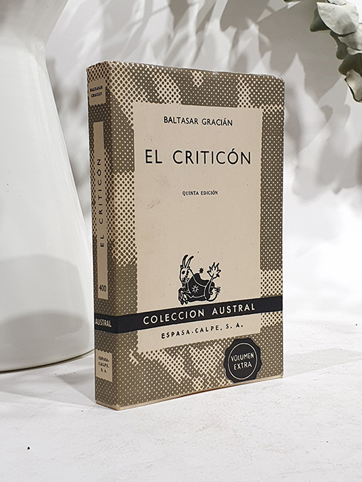 Publicado: Madrid: Espasa Calpe 1957 Autor: GRACIÁN, Baltasar. Título: El críticón. Austral, 400. Encuadernación: Encuadernación de tapa blanda Estado: Muy bien Información adicional: 8vo. 417 pp. Rústica con sobrecubierta. Muy buen estado.