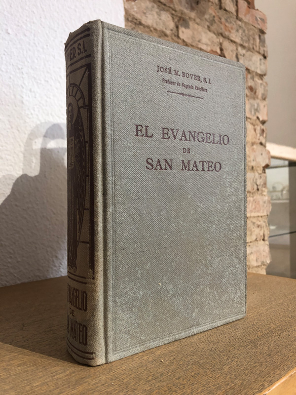 Publicado: Barcelona: Editorial Balmes, 1946 Autor: BOVER, José. Título: El Evangelio de San Mateo. Tomo I. Encuadernación: Encuadernación de tapa dura Estado: Bien Información adicional: 4to. XVI pp. + 583 pp. Encuadernación tela editorial estampada. Leves rozaduras en lomo y nombre anterior poseedor en página de respeto. Por lo demás muy buen estado.